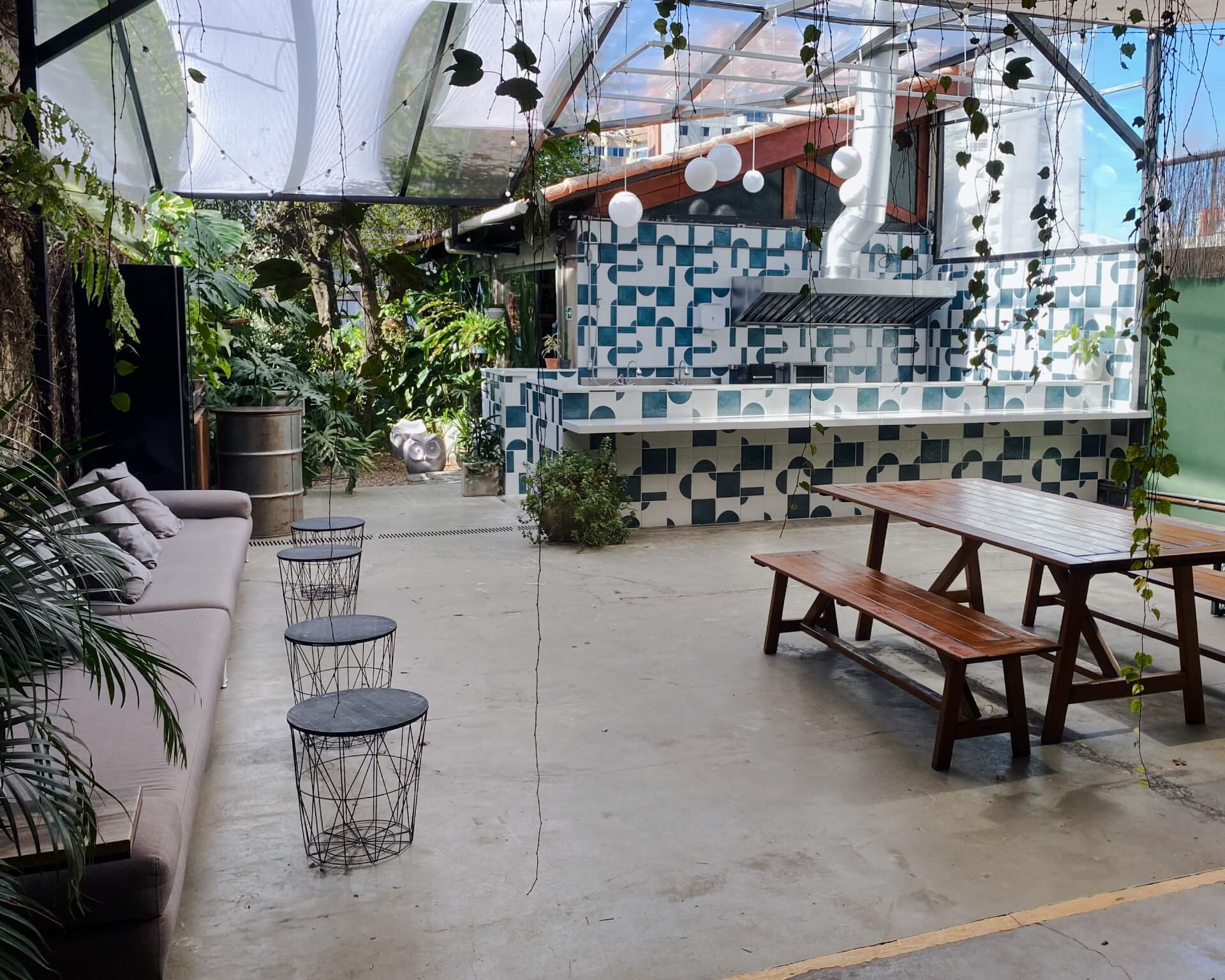 UM ESPAÇO COM MUITO VERDE E JEITO DE CASA QUE COMPORTA TUDO.